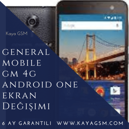 General Mobile GM 4G Android One ekran değişimi ile birlikte hemen her tür parça değişimi (örneğin; entegre değişimleri, batarya değişimi vb.), ana kart tamiri ve çeşitli onarım hizmetleri Kaya GSM tarafından gerçekleştirilebilmektedir.